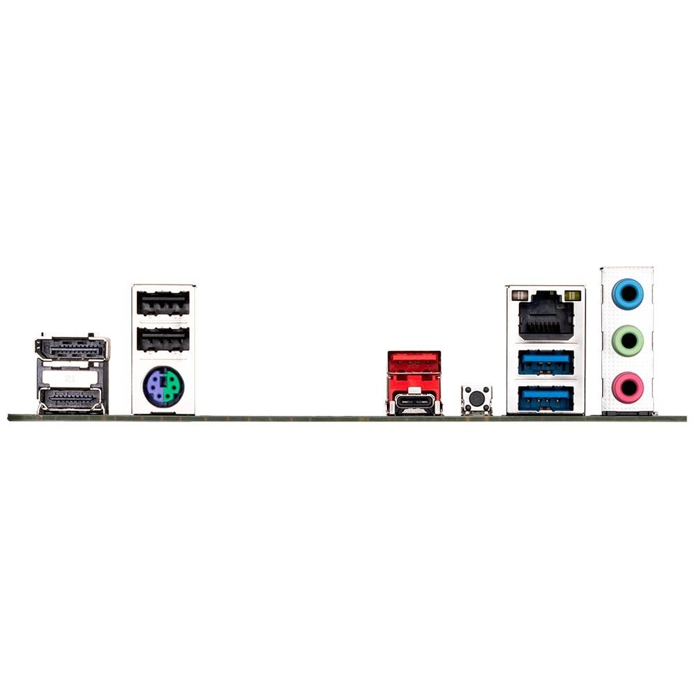 1 x Przycisk Q-Flash Plus, 1 x USB 3.1 Type-C, 1 x USB 3.1, 2 x USB 3.0, 2 x USB 2.0, 1 x RJ-45, 1 x MIC (różowy / microphone), 1 x Line Out (zielony / headphones), 1 x Line In (błękitny), 1 x DisplayPort, 1 x HDMI, 1 x PS/2 Klawiatura/Mysz Combo