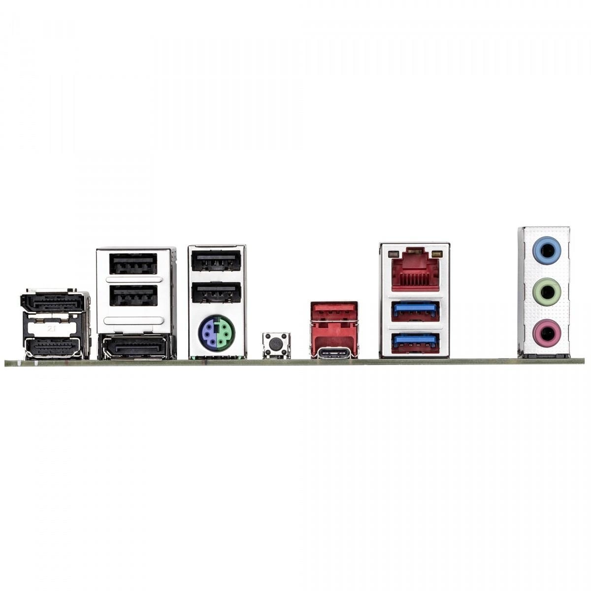 1 x Przycisk Q-Flash Plus, 1 x RJ-45, 2 x DisplayPort, 1 x MIC (różowy / microphone), 1 x Line Out (zielony / headphones), 1 x Line In (błękitny), 1 x HDMI, 4 x USB 2.0, 1 x USB 3.2 Gen 2 Type-A, 1 x PS/2 Klawiatura/Mysz Combo, 1 x USB 3.2 Gen 2 Type-C, 2