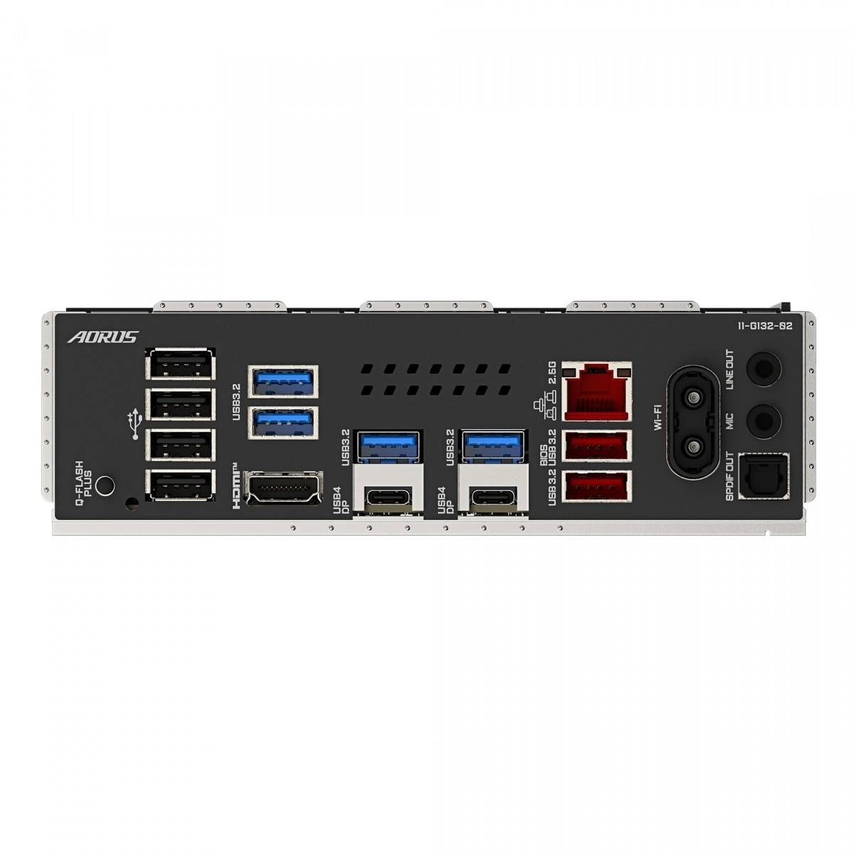 1 x Przycisk Q-Flash Plus, 2 x SMA, 1 x MIC (różowy / microphone), 1 x Line Out (zielony / headphones), 1 x HDMI, 1 x RJ-45, 4 x USB 3.0, 2 x USB 3.1, 4 x USB 2.0, 1 x S/PDIF, 2 x USB4 Typ-C