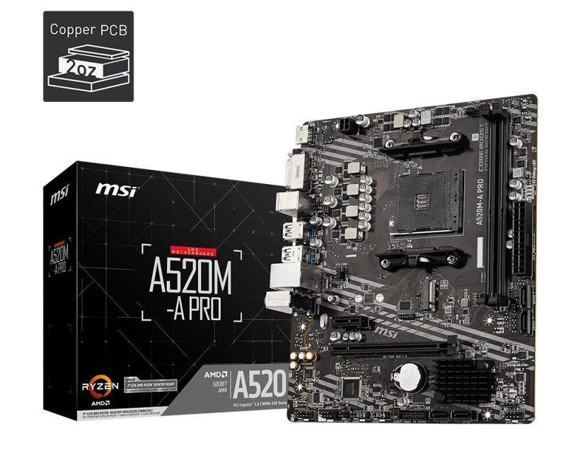 Płyta MSI A520M-A PRO /AMD A520/DDR4/SATA3/M.2/USB3.1/PCIe3.0/AM4/mATX