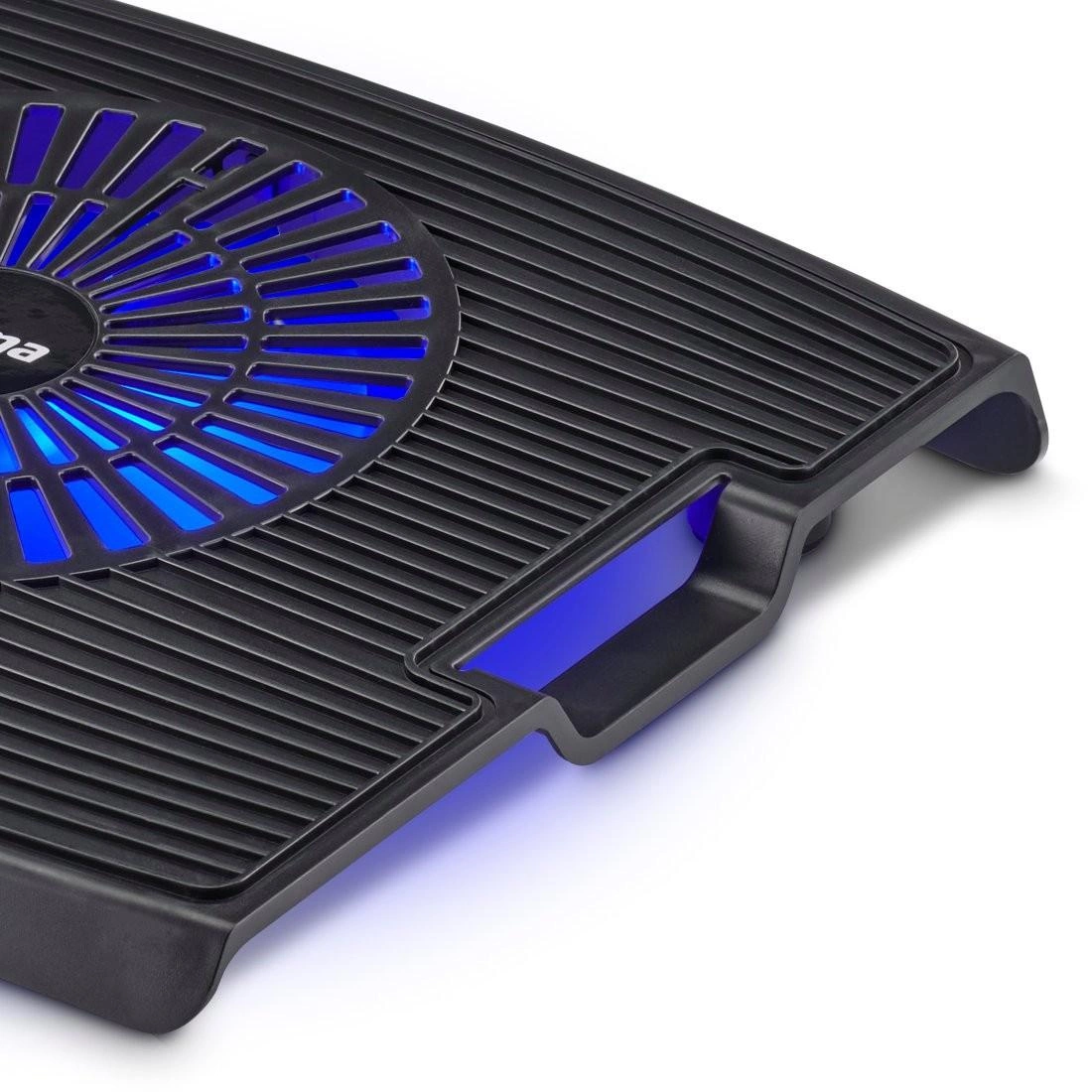 Podstawka chłodząca pod laptopa wyposażona jest w wentylator z niebieskimi diodami LED. Efektywnie odprowadza one ciepło, co pozwala utrzymać optymalną temperaturę urządzenia nawet podczas intensywnej pracy. Dzięki diodom LED podkładka zyskuje również atrakcyjny wygląd.
