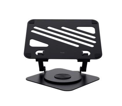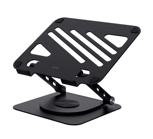 Składana metalowa podstawka pod laptopa zapewniająca lepszą widoczność i ergonomiczną pracę.