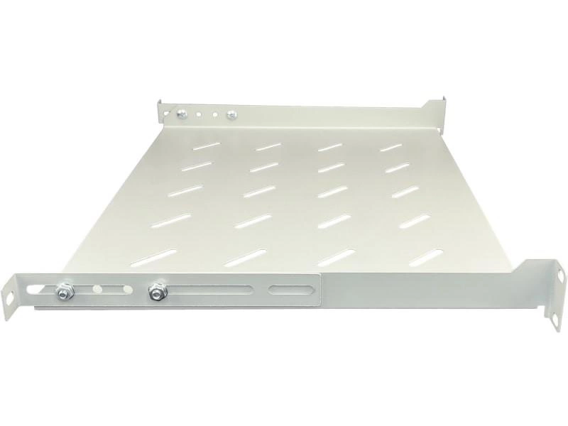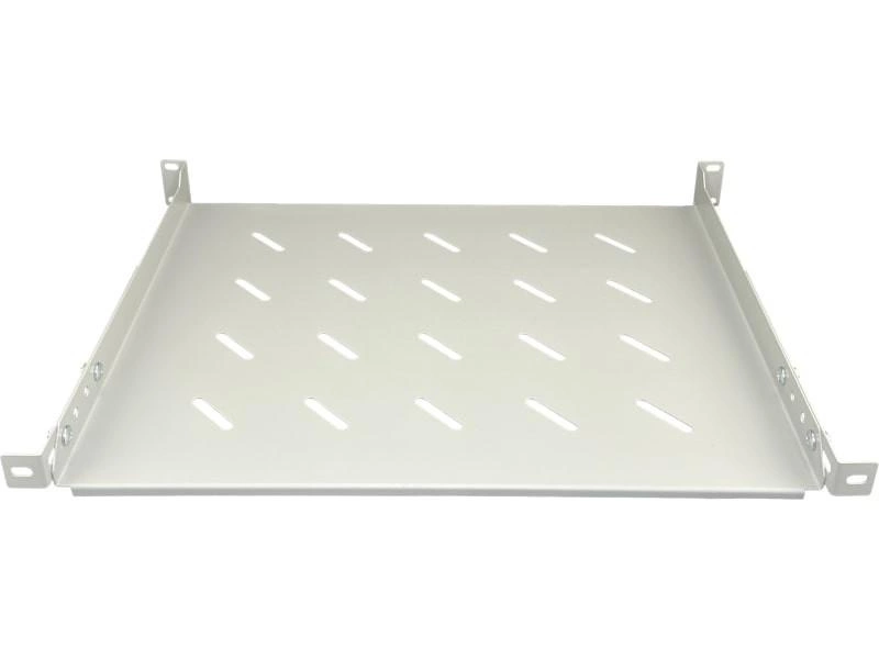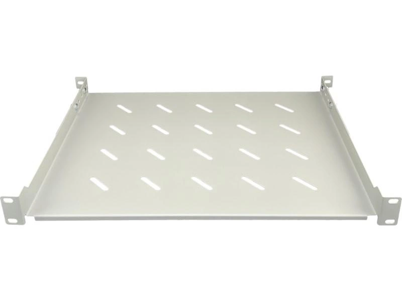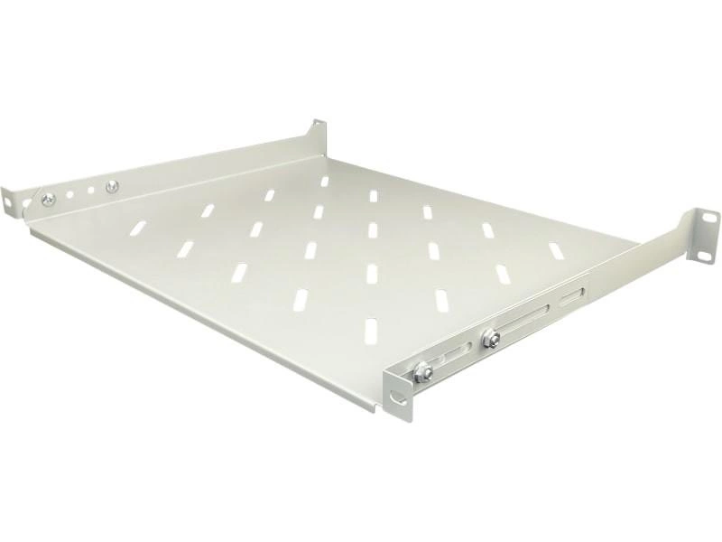 Półki pasujące do szaf w standardzie 19". Stanowią podstawę do instalacji urządzeń elektronicznych wolno stojących w szafach teleinformatycznych. Wykonane są z blachy stalowej malowanej proszkowo w kolorze szarym. Podstawa perforowana, cztery punkty mocowania.