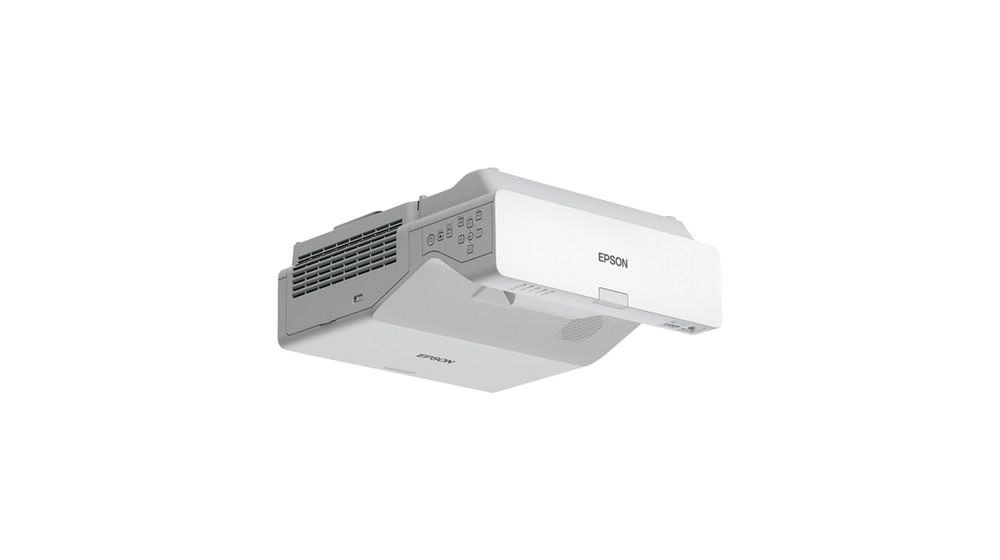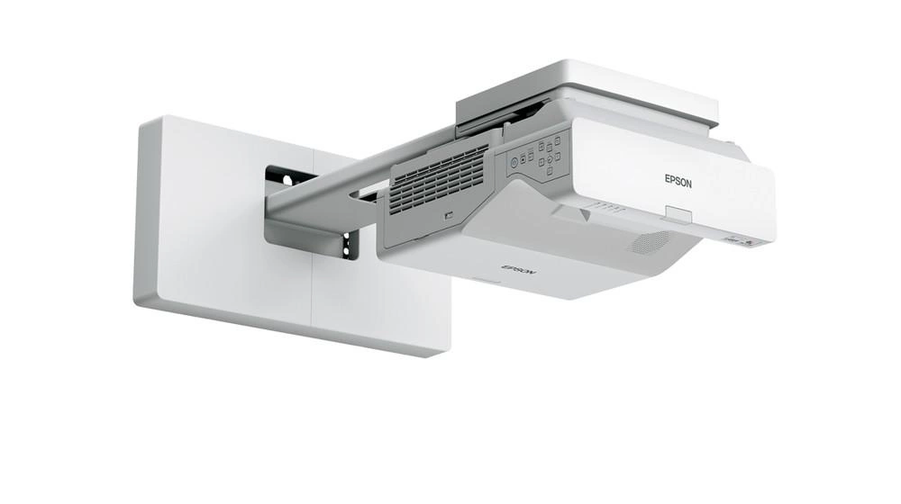 Obiektyw o ultrakrótkim rzucie projektora EB-770F umożliwia bezpieczne, dyskretne ustawienie w pobliżu ekranu, zapewniając prezenterowi swobodę działania bez rzucania cienia.