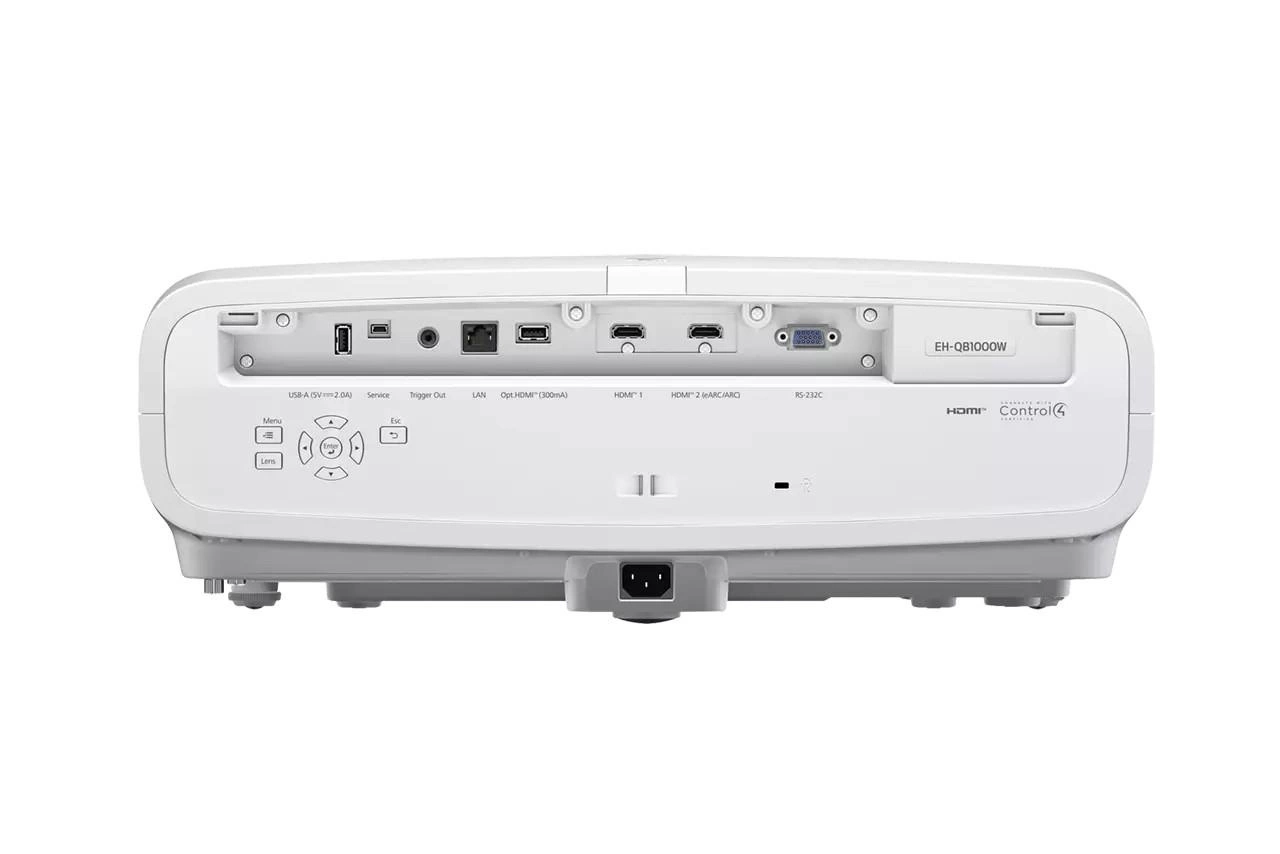 Model EH-QB1000W, zasilany laserem 3LCD, zapewnia jasne (3 300 lm) obrazy o przekątnej do 300 cali w rozdzielczości 4K (3840 × 2160). Zapewnia również współczynnik kontrastu dynamicznego 5 000 000:1 oraz inne funkcje zwiększające jakość obrazu, takie jak interpolacja klatek 4K, superrozdzielczość, dynamiczne mapowanie tonów i HDR10+, aby zapewnić absolutnie najlepsze wrażenia rozrywkowe - od filmów i transmisji sportowych po gry, w dowolnej przestrzeni multimedialnej.