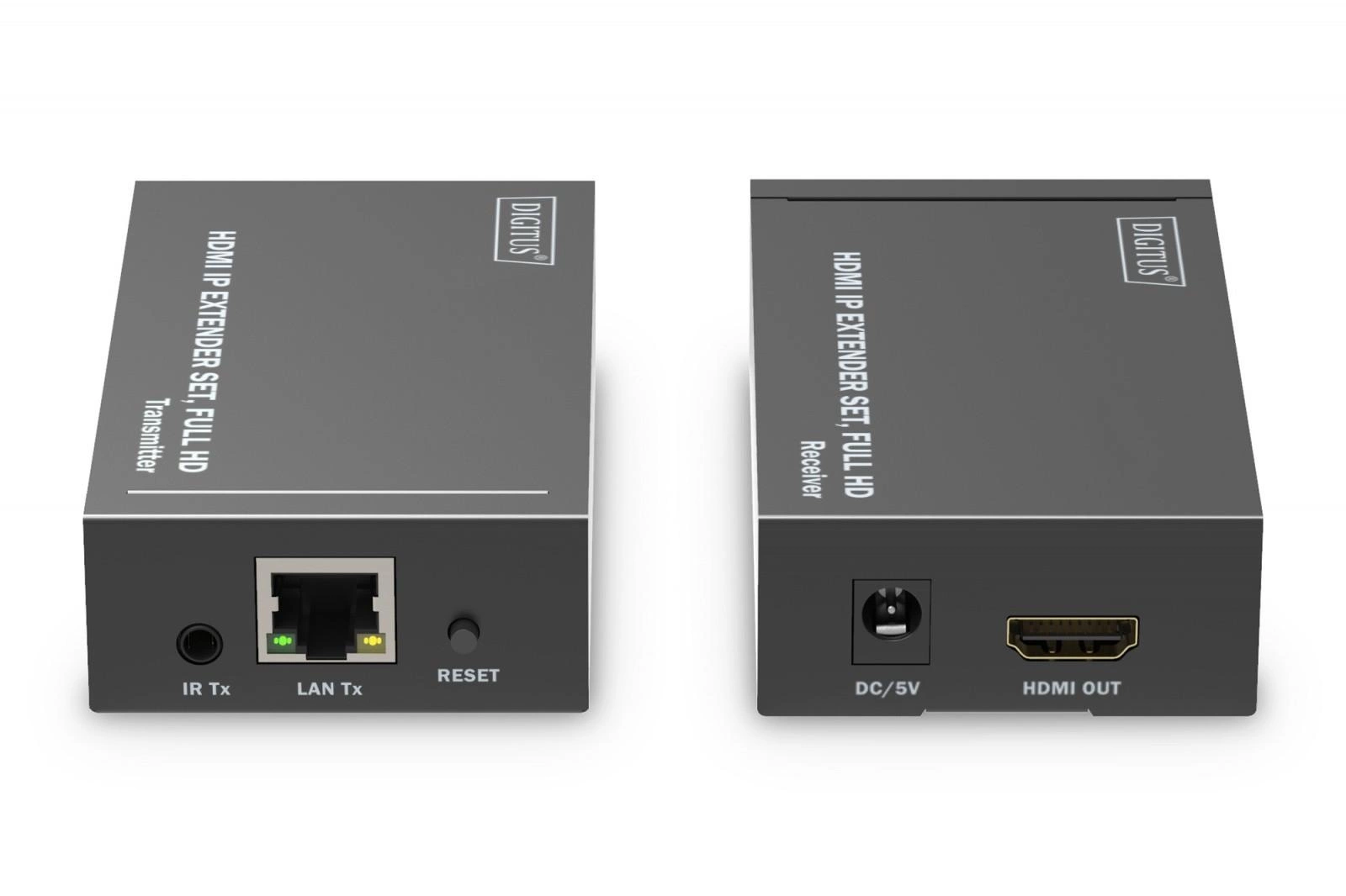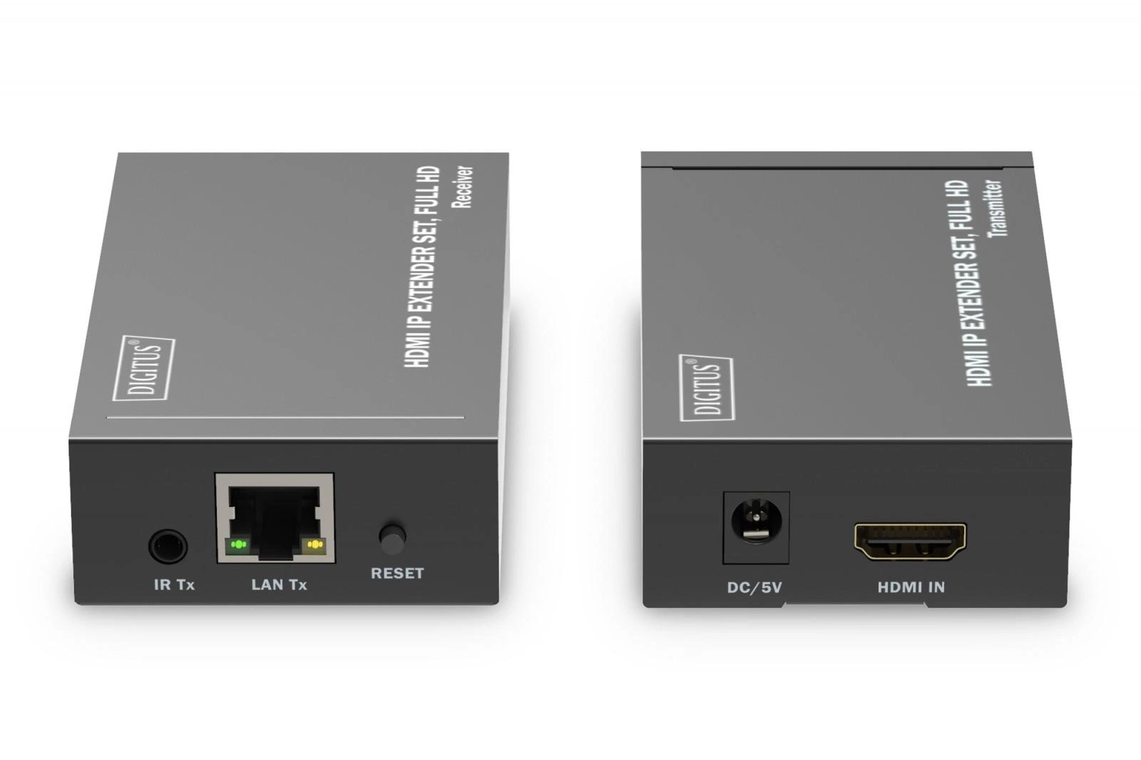 Zestaw extendera HDMI to wysokowydajny system przedłużacza sygnału wideo składający się z modułów nadajnika i odbiornika. Rozszerza zasięg sygnału audio-wideo Full HD do 120 m za pomocą kabla sieciowego CAT6 (połączenie punkt-punkt). Ponadto można użyć przełączników sieciowych i pojedynczych modułów odbiornika (DS-55518) do przesyłania treści wideo za pośrednictwem posiadanej infrastruktury sieciowej (połączenie IP) do maksymalnie 253 wyświetlaczy i rozszerzyć zasięg na nieograniczoną odległość. Dodatkowo zintegrowany dwukierunkowy interfejs do sygnału podczerwieni (IR) umożliwia zdalne sterowanie źródłem sygnału wejściowego poprzez ekran wyjściowy (po stronie odbiornika).