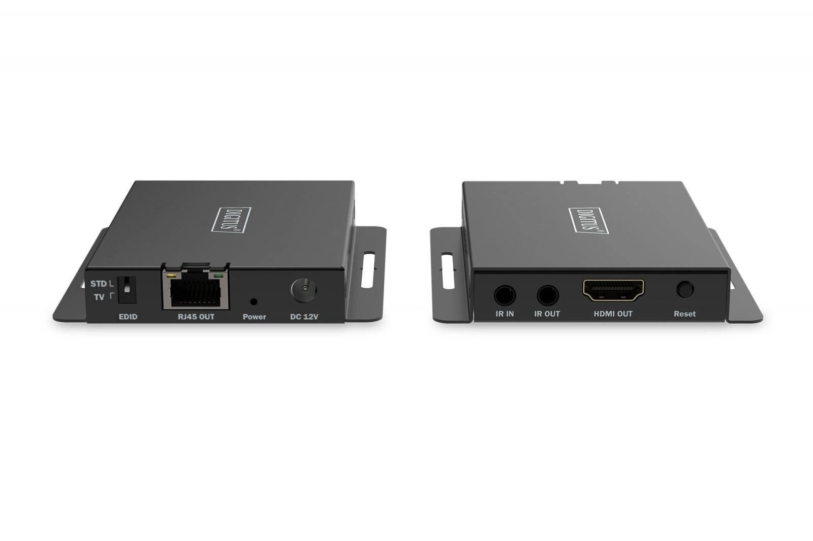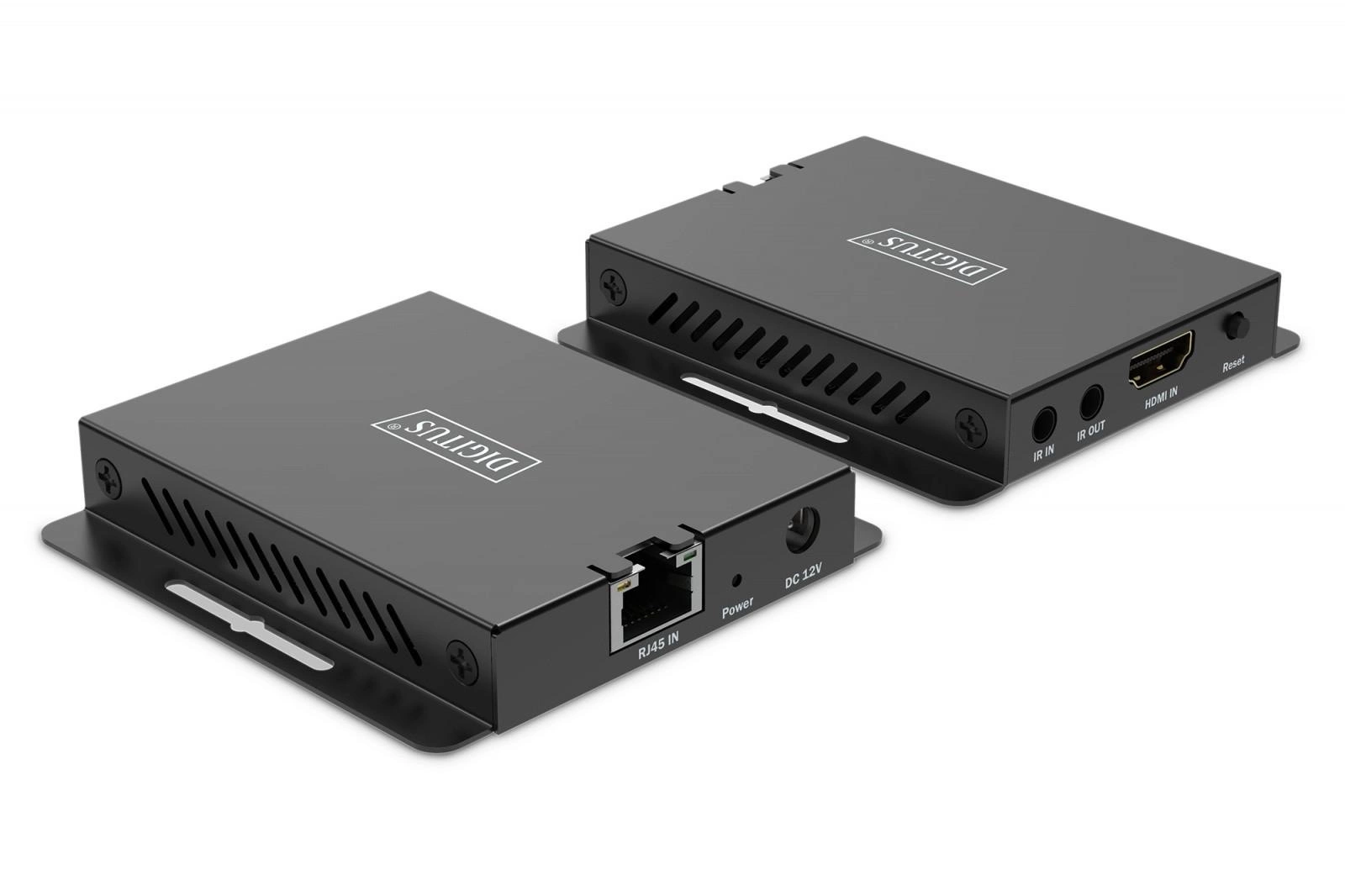 Zestaw Extendera HDMI DIGITUS umożliwia transmisję sygnału HDMI na odległość do 40 m (4K / 120 Hz, 4:4:4) przy użyciu kabli standardu CAT 6 lub wyższego. Zakres funkcjonalności obejmuje także dwukierunkową transmisję sygnału podczerwieni (IR), co umożliwia elastyczne sterowanie źródłem sygnału. Nadaje się również do montażu ściennego, przez co oferuje elastyczne możliwości instalacji.
