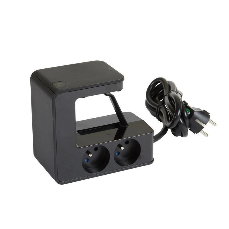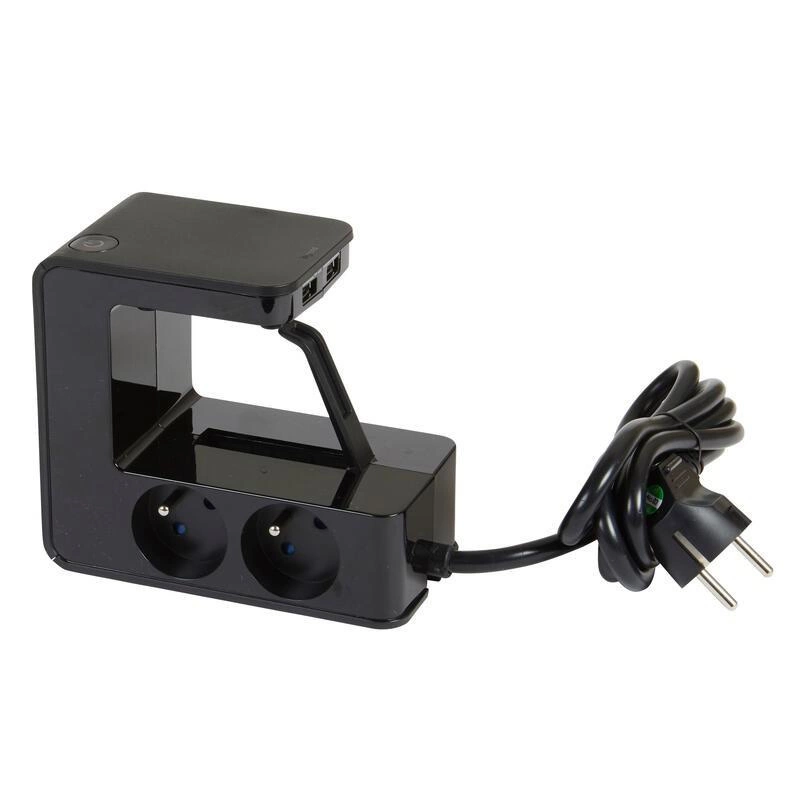Zatrzaskowy przedłużacz listwy zasilającej z 4 gniazdami 2P + E, 2 portami USB typu A i podświetlanym przełącznikiem - czarny