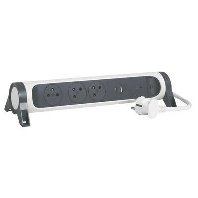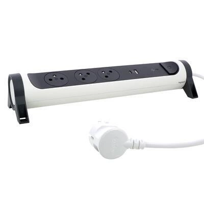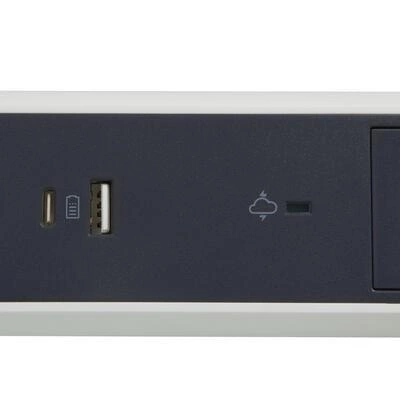 3x2P+T Surface przedłużacz z wyłącznikiem, listwą przeciwprzepięciową z USB A  i C.