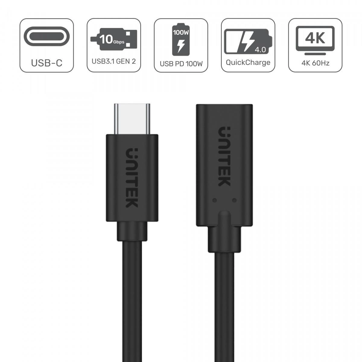 Czasem potrzebujesz tylko kilku centymetrów kabla więcej. I tu wchodzi przedłużacz USB-C 3.1 Unitek. Cały na czarno. Jako jeden z niewielu przedłużaczy USB-C jest w pełni kompatybilny ze standardem USB 3.1 Gen2, a to znaczy, że zapewnia transfer na poziomie 10 Gb na sekundę, ładowanie 100W i video 4K.