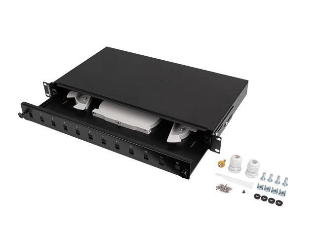 Przełącznica światłowodowa Lanberg 12xSC simplex / 12xLC duplex Rack 19" 1U czarna + akcesoria