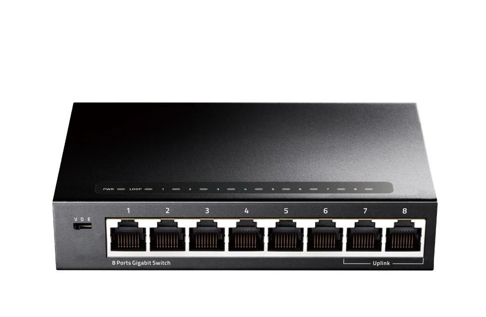Osiem nieblokujących się portów Ethernet 10/100/1000 Mbps umożliwia błyskawiczną transmisję danych bez wzajemnych zakłóceń.