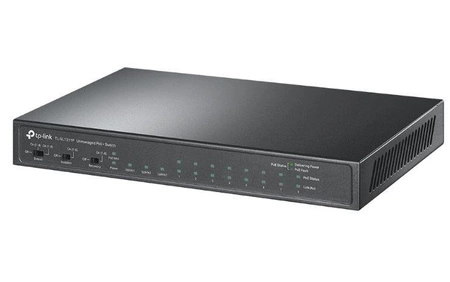 - 8 portów PoE+ - transfer danych i zasilanie urządzeń przy wykorzystaniu indywidualnych kabli