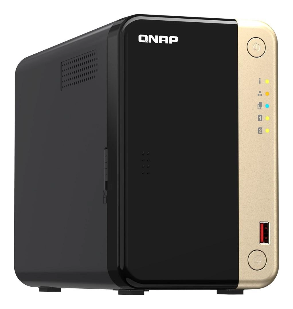 Qnap TS-264-8G, Tower, 2 x 2.5"/3.5" SATA, Intel Celeron N5105/N5095 4C/4T, 8 GB DDR4 onboard not expandable, 2 x 2.5GbE, optional 10GbE, External adapter (PSU)