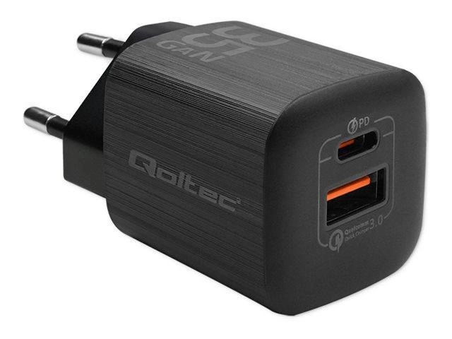 QOLTEC 50764 Ładowarka sieciowa 35W GaN ULTRA / 5-20V / 2.25 3A / 1 x USB typ C PD / 1 x USB QC 3.0 / Czarna