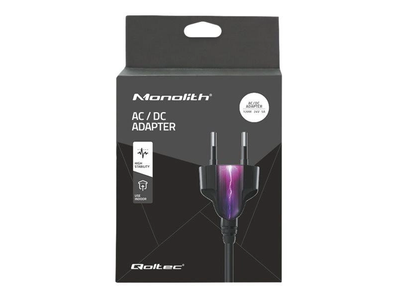 QOLTEC 50795 Zasilacz desktopowy 120W 24V 5A 5.5x2.5 + kabel zasilajacy