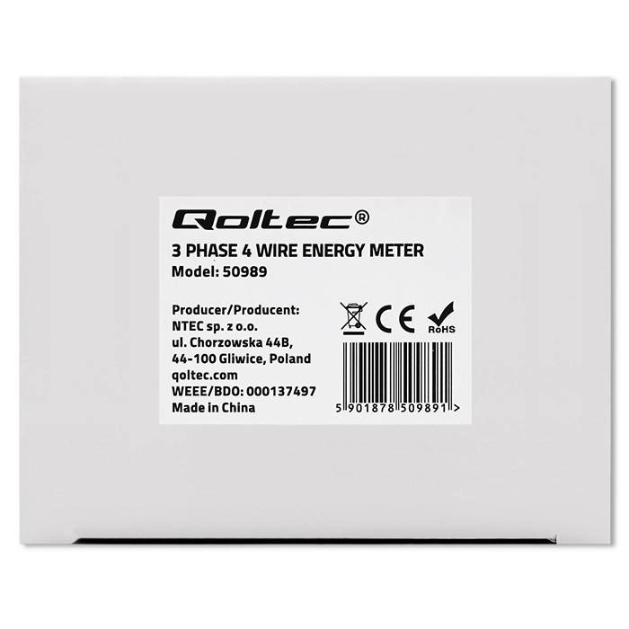 QOLTEC 50989 Trójfazowy dwukierunkowy elektroniczny licznik miernik zużycia energii na szynę DIN 400V 100A LCD 4P