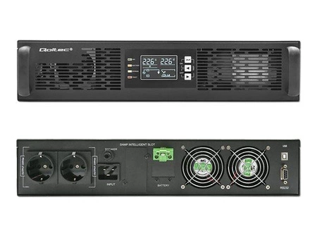 QOLTEC 52287 Zasilacz awaryjny UPS do RACK / 3kVA / 3000W / Power Factor 1.0 / LCD / EPO / USB / On line