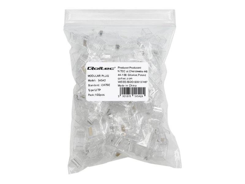 QOLTEC 54542 Wtyk przelotowy złącze RJ45 / CAT5e / UTP / Pass Through / Pozłacane styki / 100 sztuk