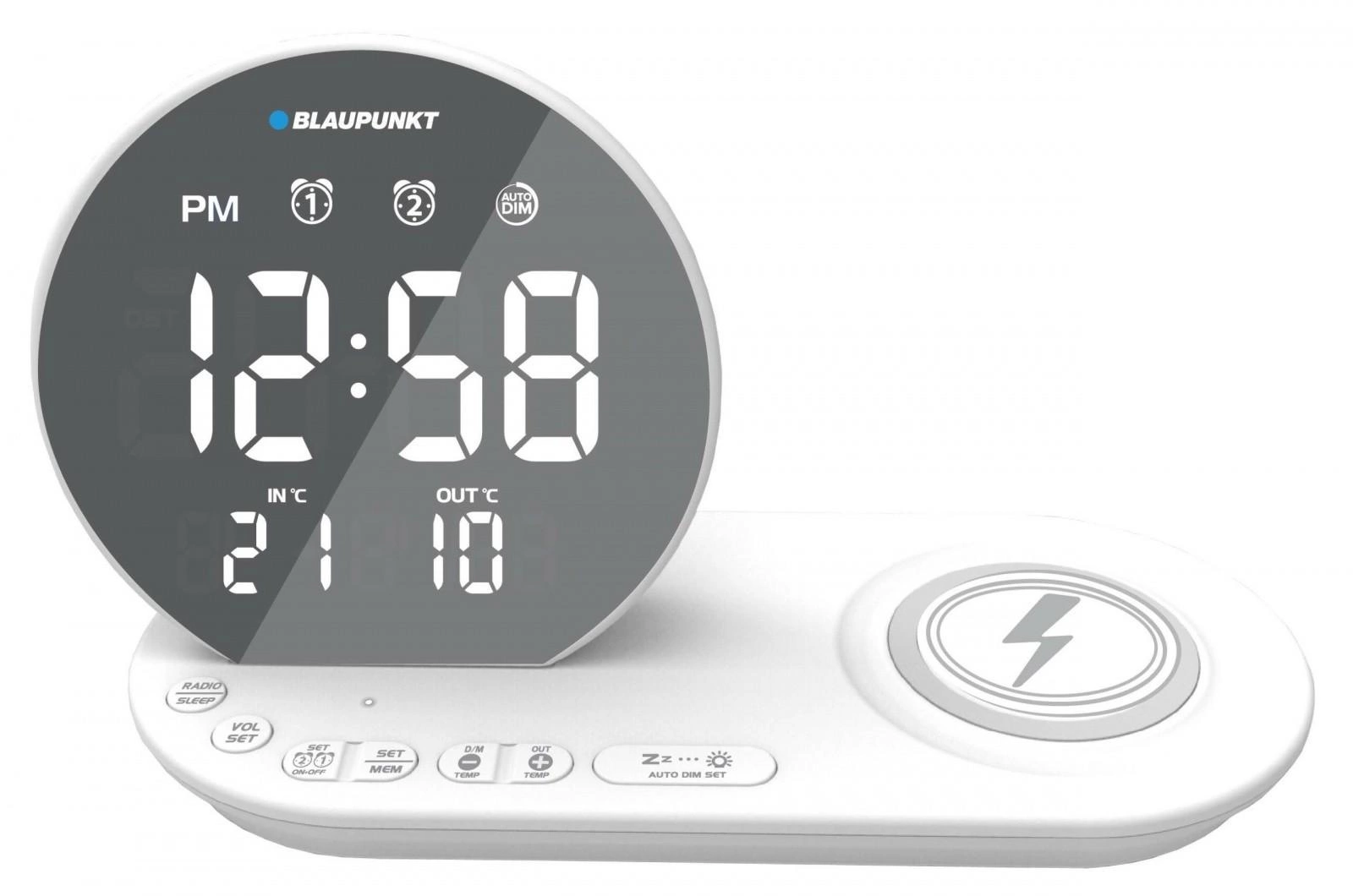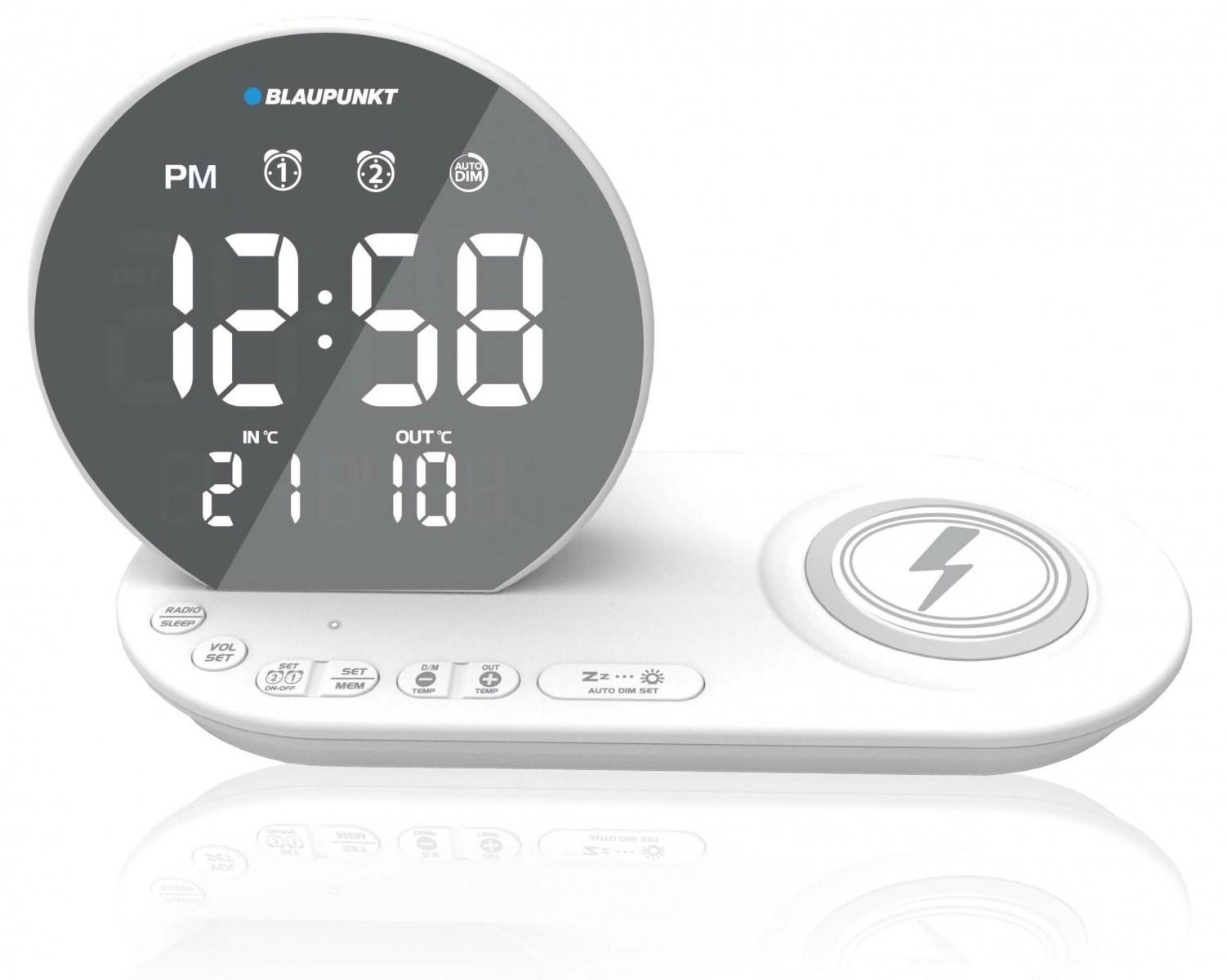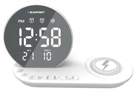 Radiobudzik FM PLL/Ładowanie bezprzewodowe/USB/Temperatura wewnętrzna/zewnętrzna/biały/CR85WH CHARGE