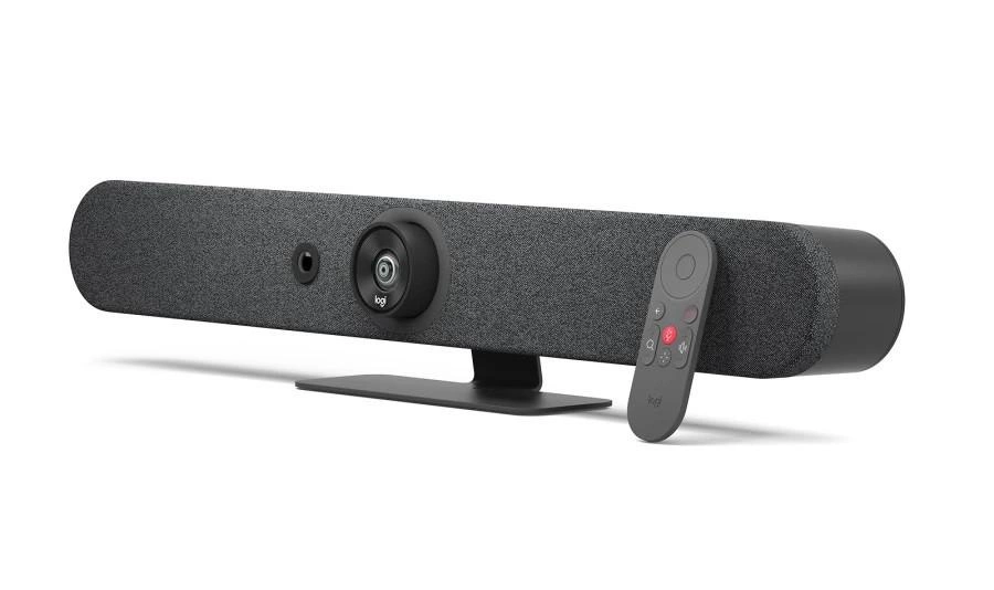 - Elementy wbudowane: 6 mikrofonów kształtujących wiązkę, kamera PTZ, 3 głośniki, wizjer AI, system regulacji i prowadzenia przewodu, statyw stołowy, platforma Logitech CollabOS