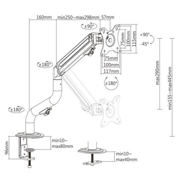 • Trwała regulowana sprężyna gazowa odpowiednia dla monitorów o wadze 2-8kg