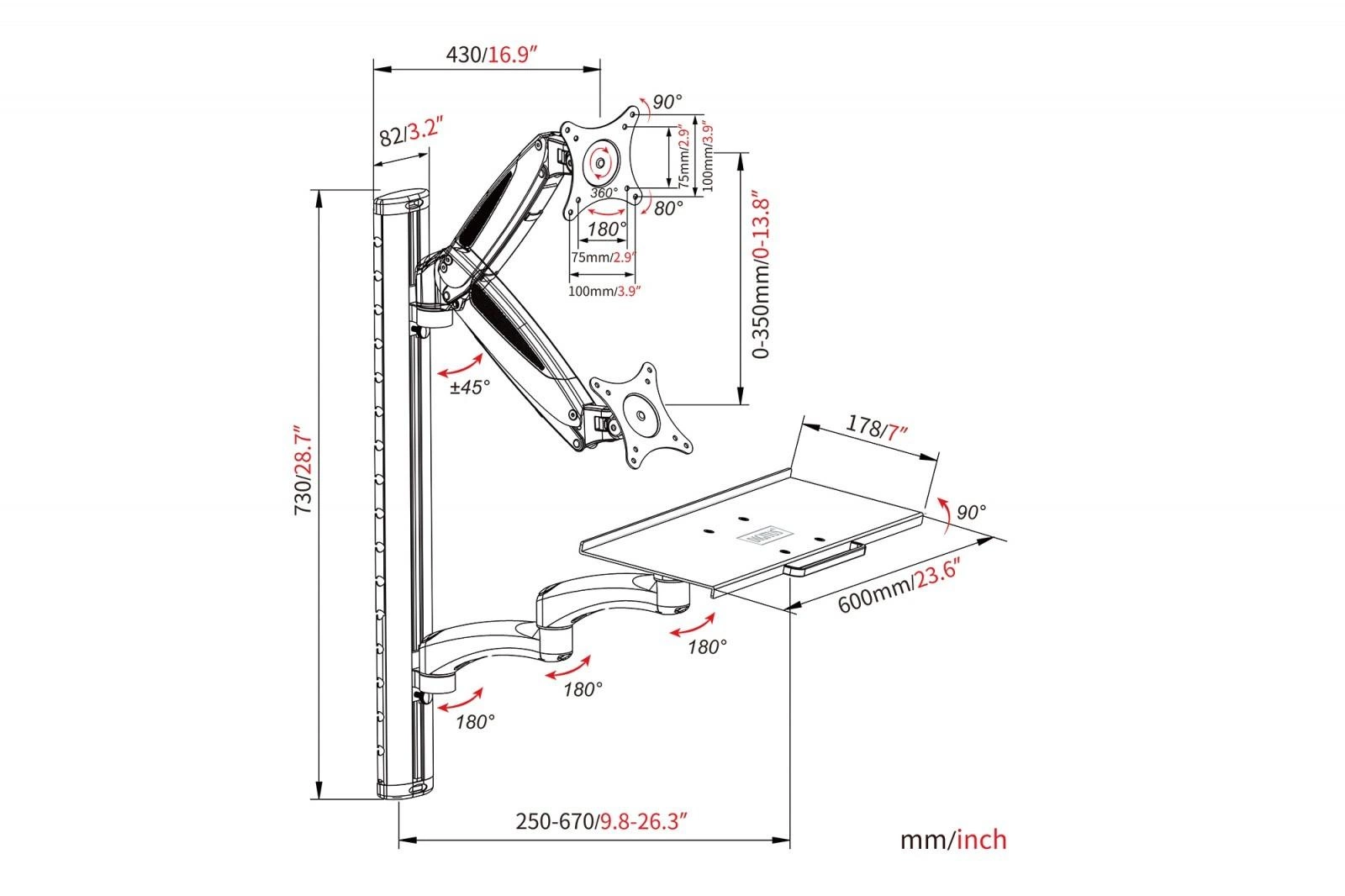 Uniwersalny uchwyt do montażu monitora i klawiatury/myszy na ścianie, z elastyczną regulacją wysokości
