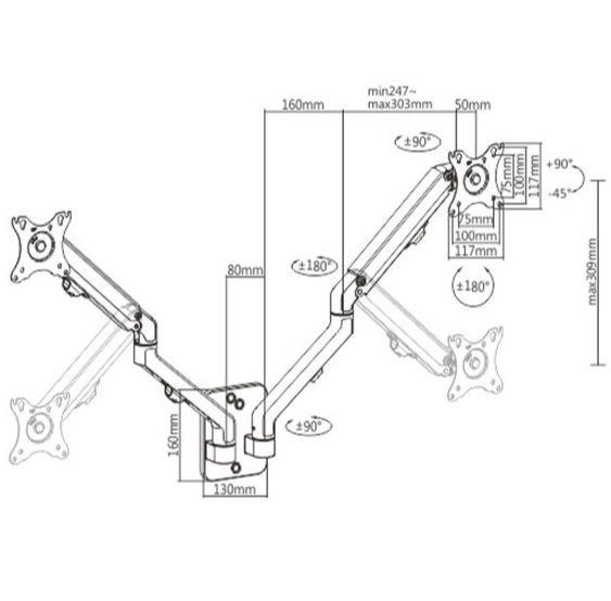 - Trwałe regulowane sprężyny gazowe odpowiednie dla monitorów o wadze od 2 do 7 kg