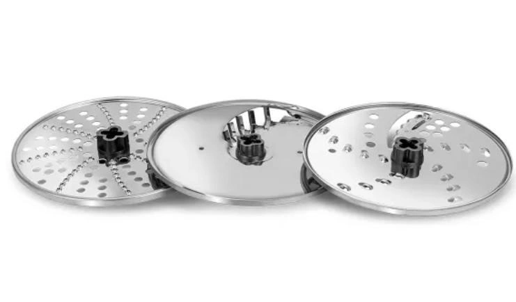 W zestawie z robotem MRK-27 otrzymujesz 3 pełne tarcze ze stali nierdzewnej. Tarcza do ucierania ziemniaków ułatwi przygotowanie chrupiących placków, tarcza do ścierania i krojenia w plastry sprawdzi się przy warzywach i serach, a tarcza do krojenia w słupki pozwoli na szybkie stworzenie kształtnych frytek lub dodatków do sałatek. Wytrzymała stal nierdzewna gwarantuje trwałość i precyzję, dzięki czemu przygotowywanie posiłków staje się prostsze i przyjemniejsze, a tarcze posłużą Ci przez długie lata!
