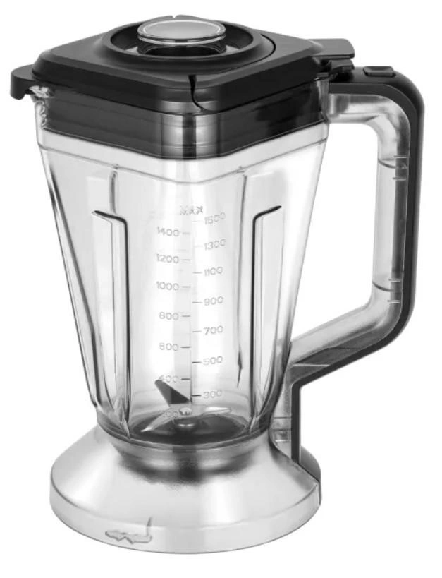 - Misa blendera o pojemności 1500 ml z ostrzem ze stali nierdzewnej, pokrywą i zatyczką z funkcją miarki. Zamykany na