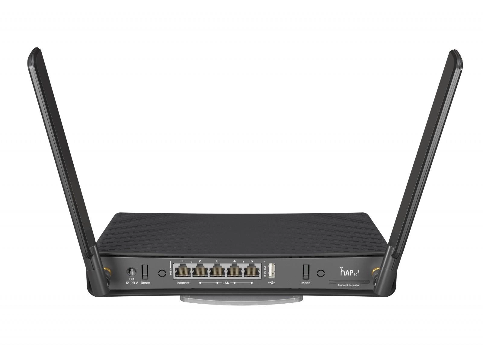 Dzięki 5 portom Gigabit Ethernet, 256 MB pamięci RAM i czterordzeniowemu procesorowi, hAP ac 3 może zadowolić nawet największe i najbardziej wymagające gospodarstwa domowe. Dzięki obsłudze PoE może zasilać lub być zasilany przez inne urządzenia. Jest 128 MB NAND i pełnowymiarowy port USB, który można wykorzystać do dodania dodatkowej pamięci. Nowa obudowa umożliwia montaż urządzenia w pionie lub poziomie. W zestawie znajduje się również zestaw do montażu na ścianie.