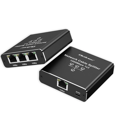 - Wyposażony w 4 porty RJ45 (1x Input, 3x Output),