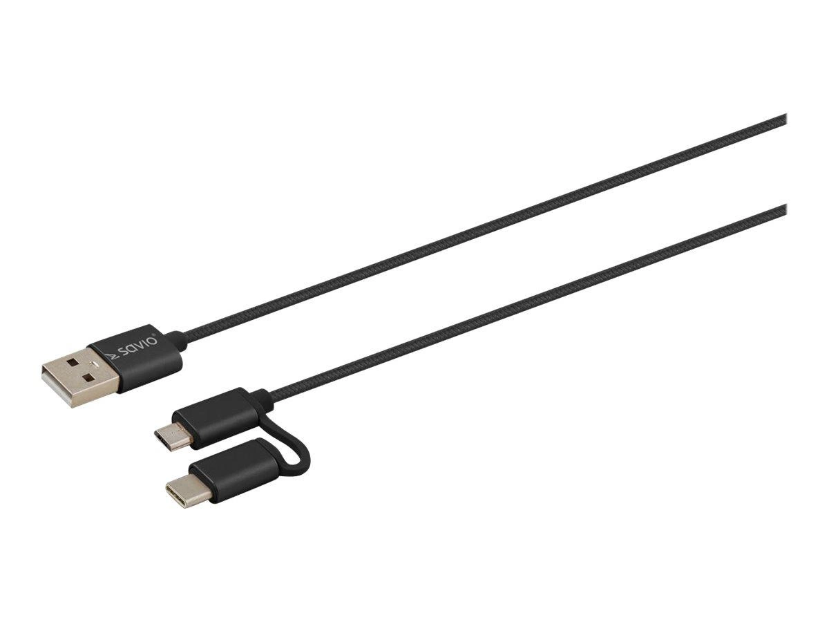 SAVIO CL-128 SAVIO CL-128 Kabel 2w1 USB - micro USB/typ C 2.1A, 1m