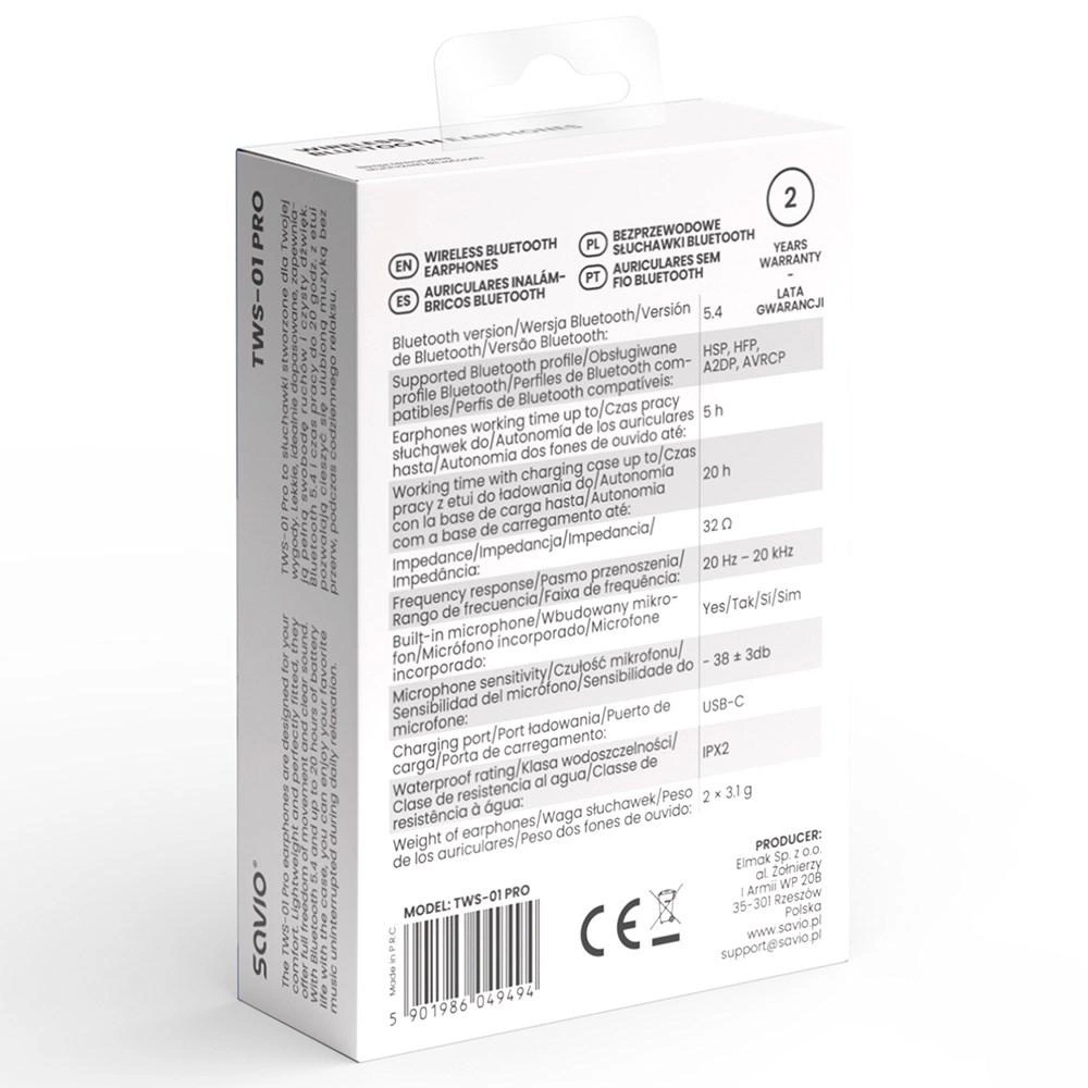 SAVIO SŁUCHAWKI BEZPRZEWODOWE BLUETOOTH TWS-01 PRO