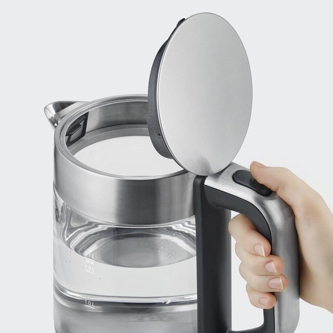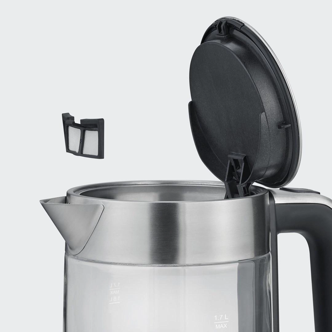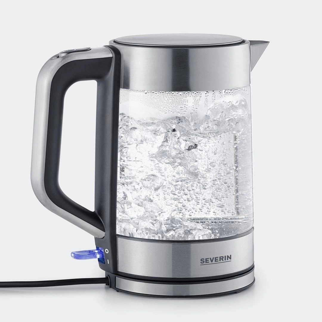 SEVERIN CZAJNIK ELEKTRYCZNY SZKŁO-STAL, 1,7L, ZAKRYTA GRZAŁKA, KONTROLER STRIX, WNĘKA NA PRZEWÓD, WSKAŹNIK WODY, 2200W WK3420