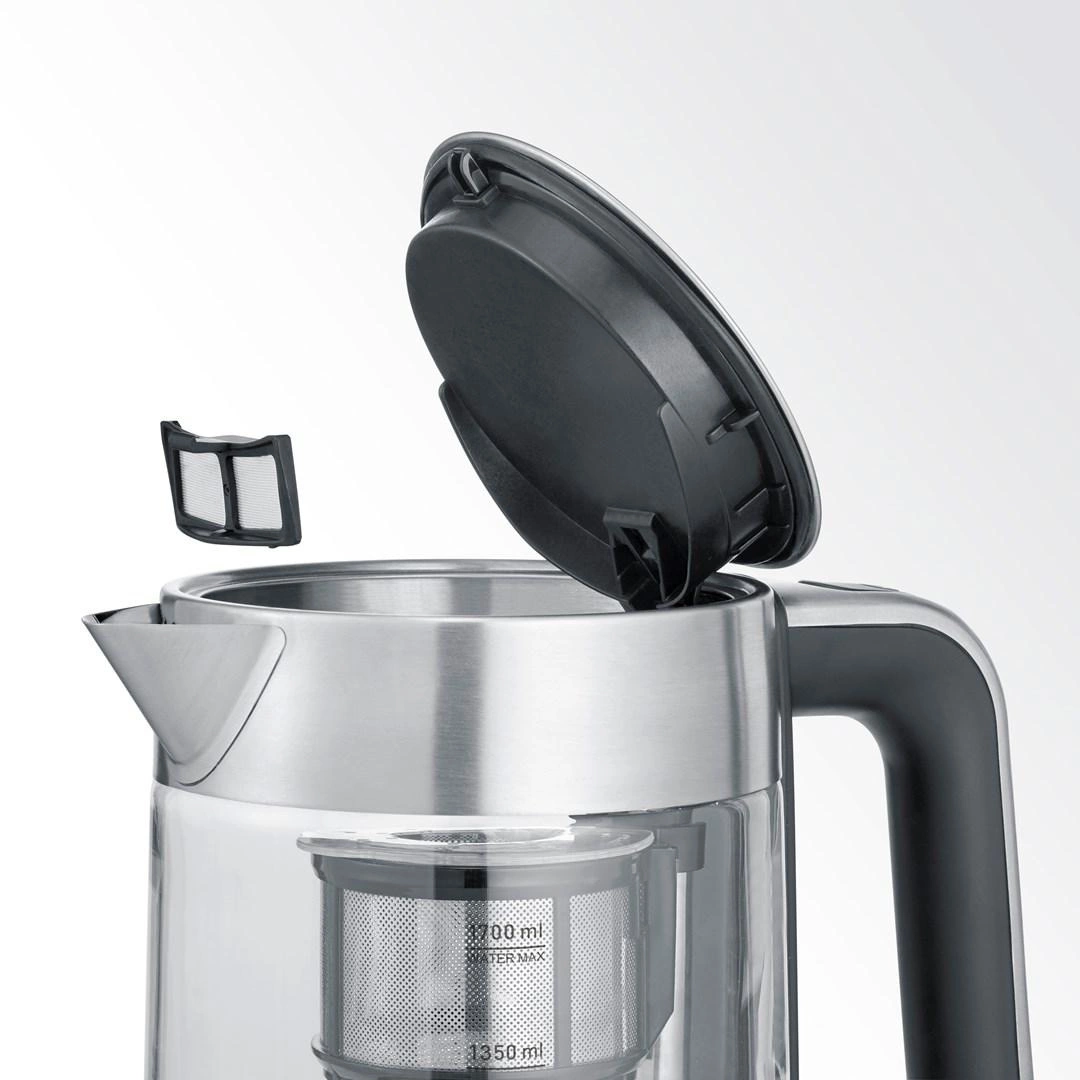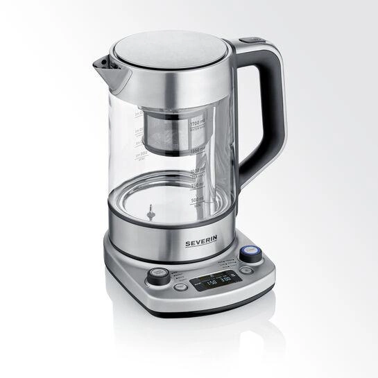 SEVERIN CZAJNIK ELEKTRYCZNY SZKŁO-STAL, REG. TEMPERATURY, SITKO DO HERBATY, AUT. PROGRAM, KONTROLER STRIX, 1,7L 3000W WK3422
