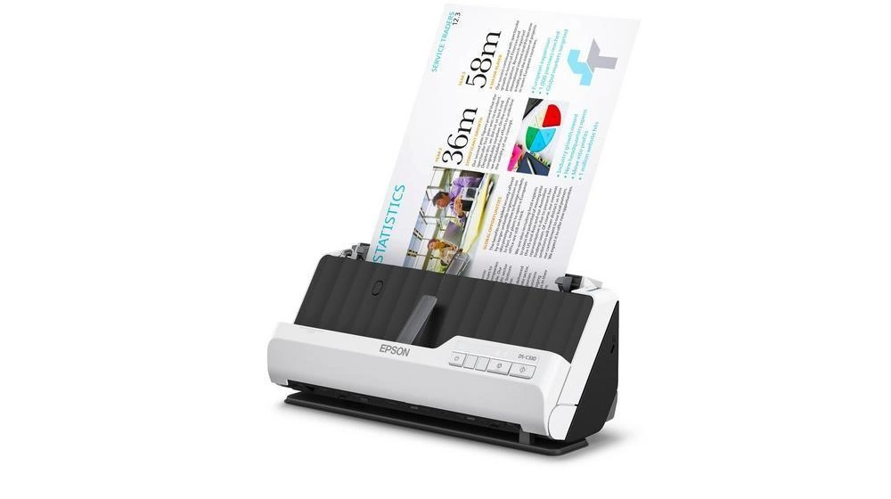 Kompaktowy skaner A4 klasy premium obsługujący wiele różnych dokumentów, o niewielkich wymiarach podczas użytkowania i o niskim poborze mocy.