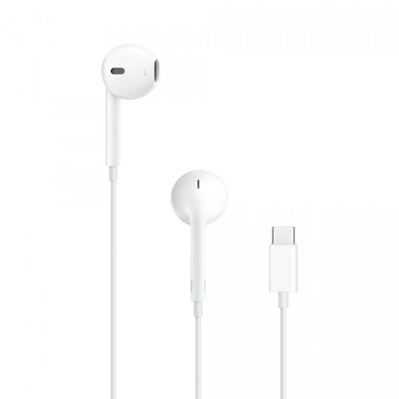 Słuchawki douszne EarPods (USB-C) mają wbudowanego pilota umożliwiającego regulację głośności, sterowanie odtwarzaniem muzyki i wideo oraz odbieranie i kończenie połączeń. Wystarczy nacisnąć odpowiedni przycisk.