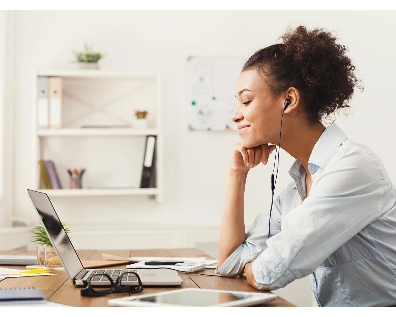 Przewodowe słuchawki douszne USB-C Gumy Connect są wyposażone w pilota zdalnego sterowania z łatwymi do naciśnięcia przyciskami oraz funkcję włączania i wyłączania mikrofonu.