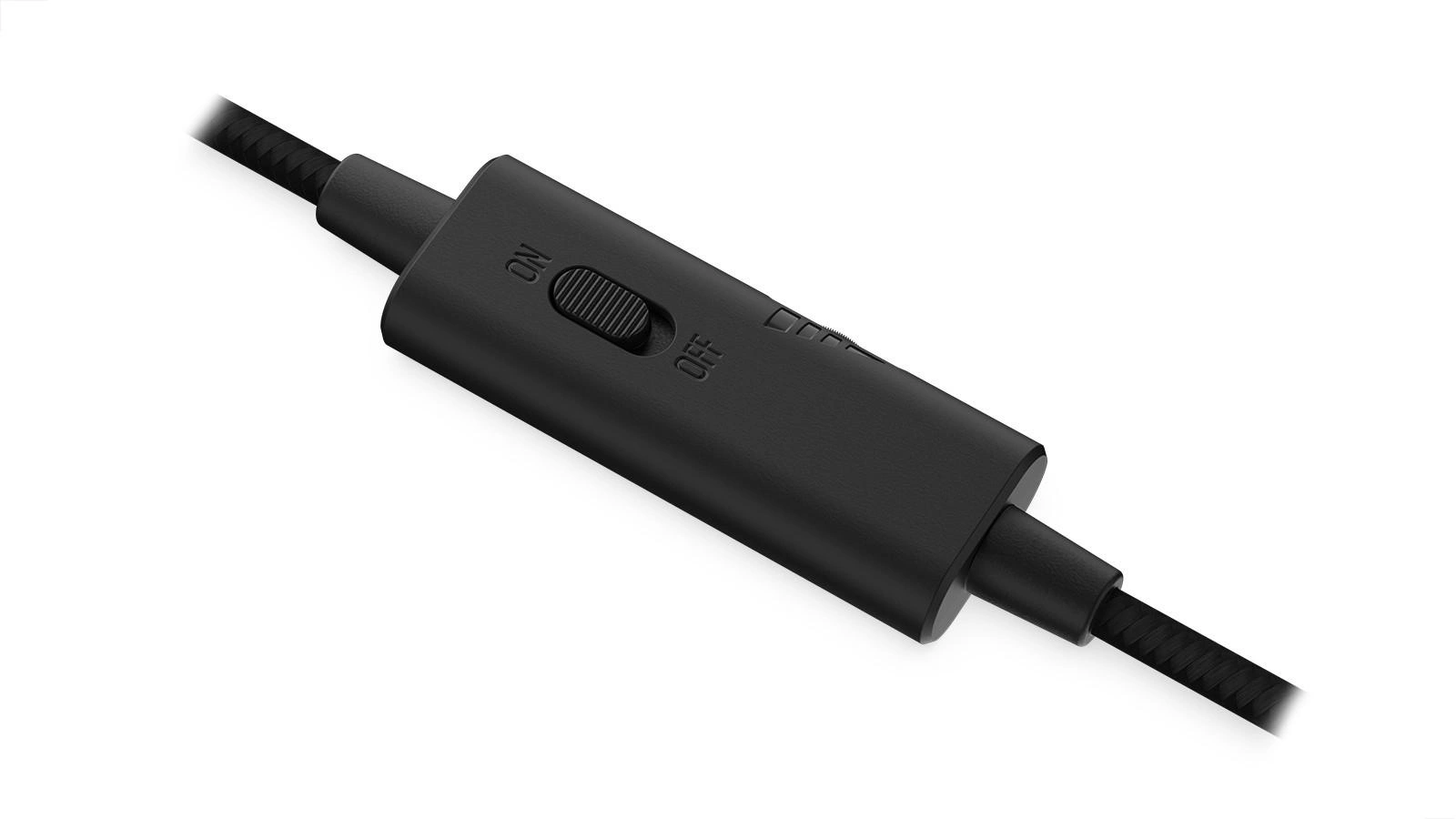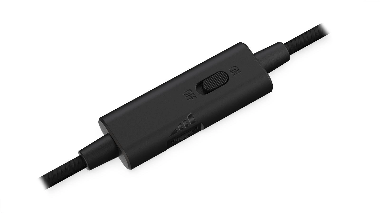 Na przewodzie ciągnącym się od muszli KRUX Pozp RGB umieściliśmy pilota zarządzającego całym headsetem. Znajdziesz tam standardowy od wielu lat potencjometr od przyciszania bądź pogłaszania, a z pogłaszaniem to uważaj, bo po rozkręceniu na bombe jest naprawdę głośno! Żeby Ci uzmysłowić, jak głośny jest to dźwięk. Przypomnij sobie krzyki dzieciaka w grze, który nie mógł wytrzymać po tym jak zmiotłeś go na solo. Zostawmy to jednak, w przypadku podbramkowej sytuacji rozgrywającej się w prawdziwym świecie, przyda Ci się na pewno specjalny przycisk od natychmiastowego odcięcia mikrofonu. Pozwala to na uniknięcie przypału na serwerze, gdy ktoś wparuje do Ciebie bez pytania.