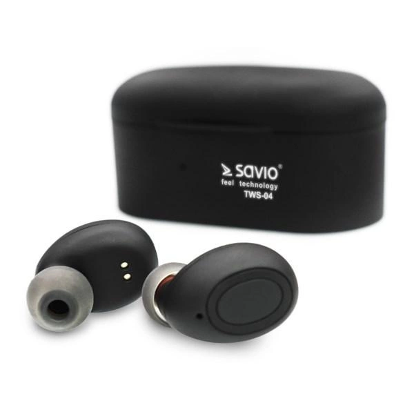 Słuchawki SAVIO TWS-04 (bluetooth; bezprzewodowe, Bluetooth; z wbudowanym mikrofonem; kolor czarny