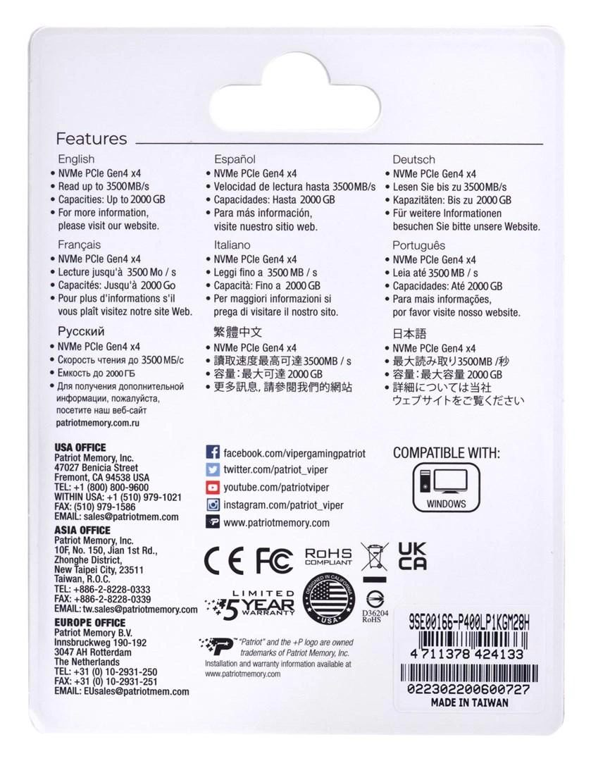 SSD Patriot Viper P400 Lite M.2 PCI-Ex4 NVMe 1000GB