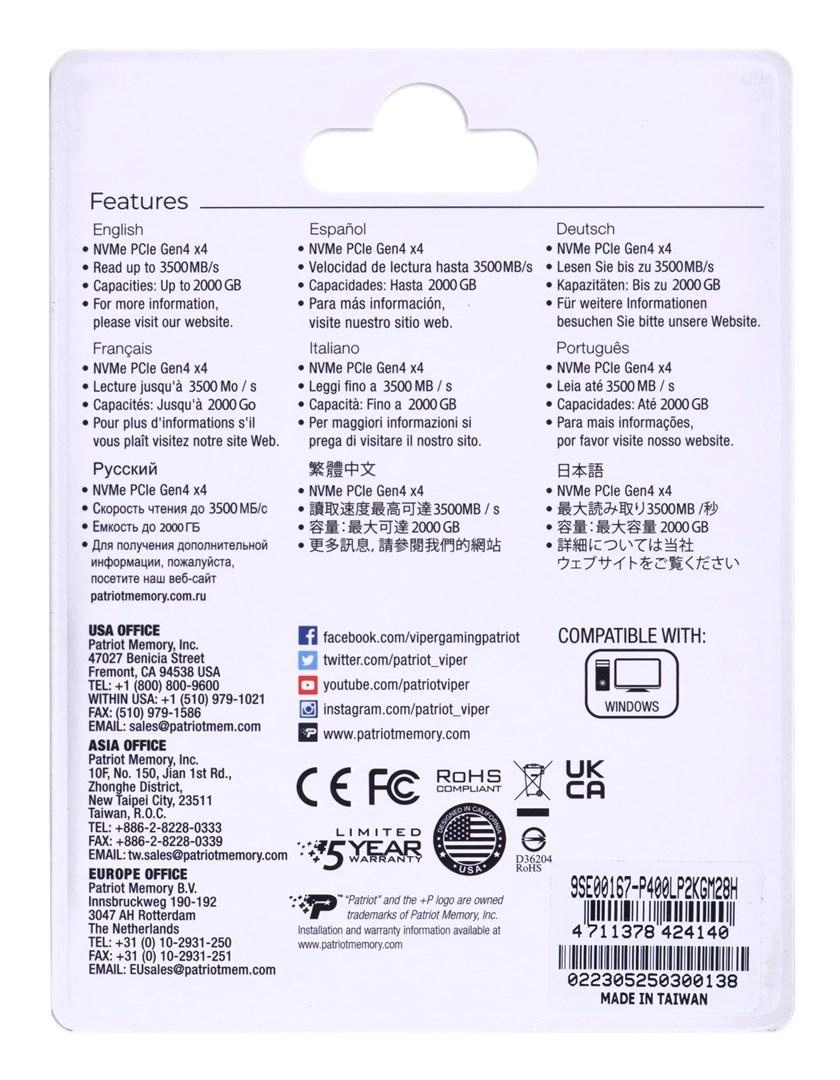 SSD Patriot Viper P400 Lite M.2 PCI-Ex4 NVMe 2000GB