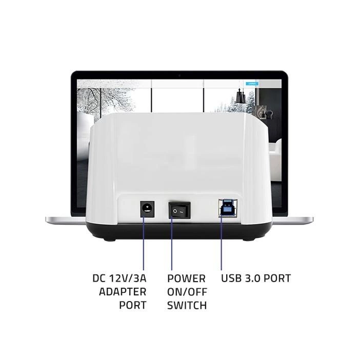 Można umieścić dysk twardy w porcie A lub B, podłączyć stację do komputera za pomocą kabla USB i zasilania, a następnie przystąpić do kopiowania.