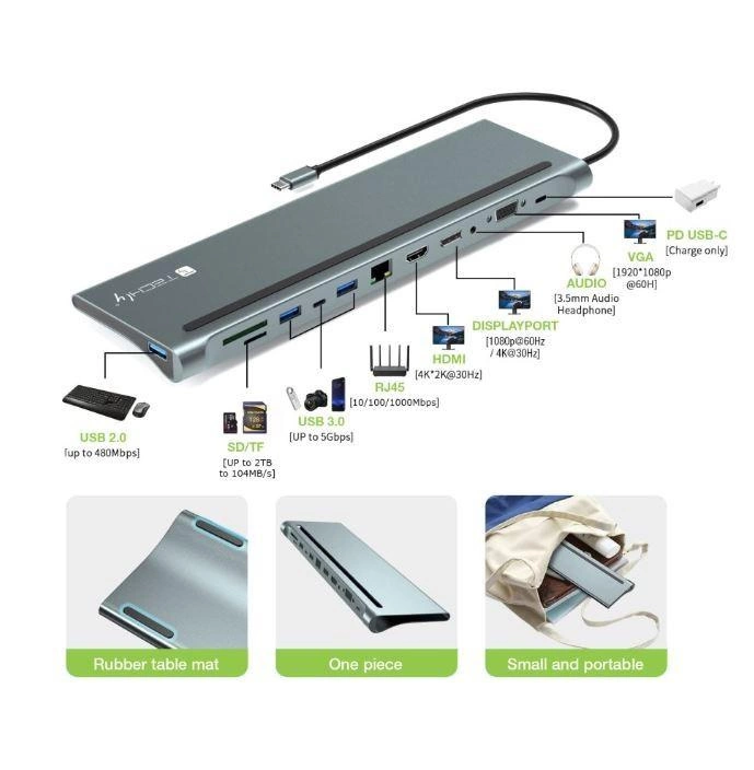 IUSB31C-DOCK12DPHD to wielofunkcyjny hub typu C. Obsługuje wideo HDCP i jest kompatybilny z interfejsem USB 3.2 typu C. Obsługuje transmisję wideo z komputera, tabletu i smartfona do 3 monitorów w trybie rozszerzenia lub lustrzanego odbicia. Jeśli Twoje urządzenie nie ma dostępnych portów, ten wielofunkcyjny hub może spełnić Twoje potrzeby, umożliwiając ładowanie, odczytywanie i zapisywanie danych, podłączanie innych urządzeń, takich jak mysz, klawiatura i inne urządzenia peryferyjne USB, połączenie sieciowe oraz wyjście audio i wideo.