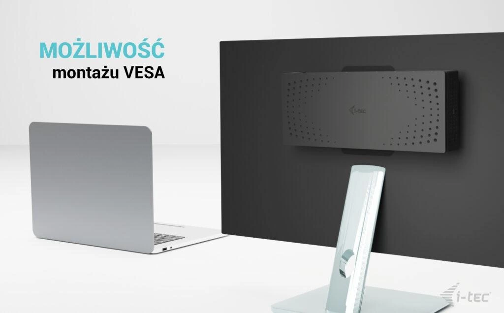 • Stacja dokująca pozwala na montaż za monitorem VESA przy zastosowaniu uchwytu.