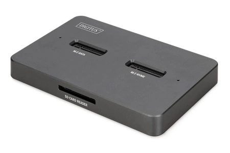 Stacja dokująca 3 w 1 od DIGITUS może pomieścić dyski SSD M.2 w technologii NVMe lub SATA, a na pokładzie znajduje się również czytnik kart SD Express 7.1 o najwyższych prędkościach transferu danych. Zarządzaj nośnikami danych M.2 o pojemności do 4 TB na gniazdo i dodatkowymi kartami SD o pojemności do 2 TB. Obsługiwane są dyski SSD NVMe z kluczem B+M i kluczem M, a także dyski SSD SATA z kluczem B+M, każdy w formatach 2242, 2260, 2280 i 22110. Łatwe rozszerzanie pojemności pamięci masowej wielu urządzeń USB-C, takich jak komputery PC, notebooki, telewizory, konsole do gier lub routery.