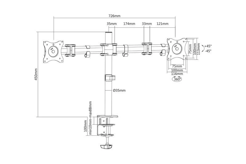 Uniwersalny stojak z montażem do blatu biurka lub stołu dla maksymalnie dwóch monitorów lub telewizorów umożliwiający znaczne rozszerzenie wizualnego obszaru roboczego.