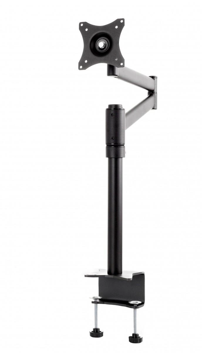 Uchwyt biurkowy SV03 z podwójnym ramieniem do monitora 19-27 to rozwiązanie dla osób, które cenią ergonomię podczas pracy przy komputerze. Pełna regulacja wysokości w połączeniu z obrotem ramienia o 360° daje możliwość ustawienia ekranu według indywidualnych potrzeb użytkownika oraz zapewnia doskonały komfort podczas pracy biurowej. Dwa rodzaje mocowań do biurka pozwalają na dowolny montaż, zwiększając funkcjonalność uchwytu. SV03 jest idealnym wyborem dla osób wykonujących prace związane z całodzienną obsługą monitorów m.in. w branży przemysłowej, transportowej czy centrach monitoringu.