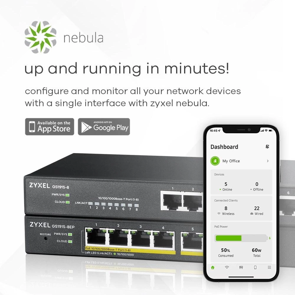 Switch Zyxel GS1915-8EP 8p PoE (PoE+: 8;) 60W Managed Gigabit
